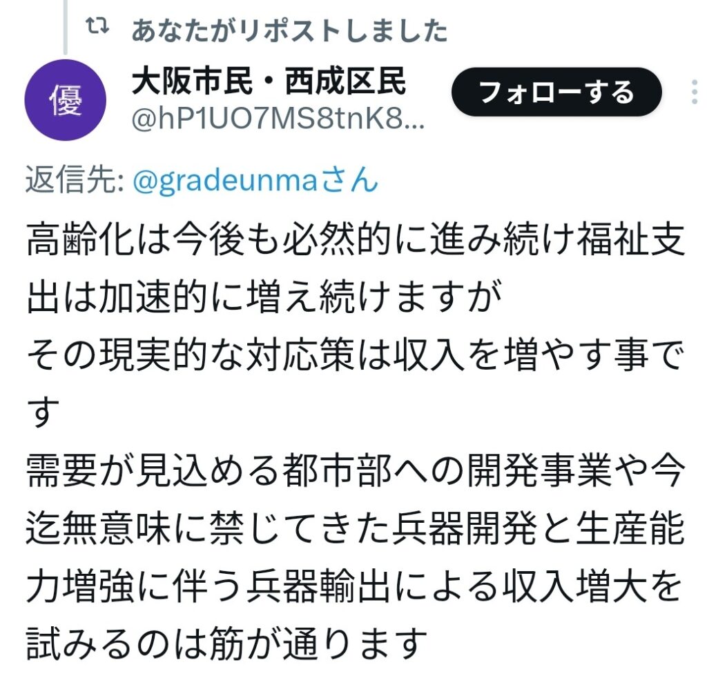 既に日本はアメリカの富を吸い上げています――「輸出企業優遇」は、日本経済の再生ではなく、「既得権益の八百長試合を今後も応援する」という意味です。そしてアメリカに支払う対価が軍拡です――国内で富が循環する仕組みを作れなかったことが将来世代への最大のツケです!