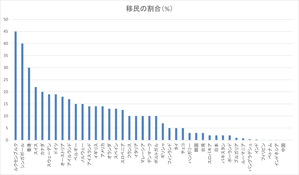 グラフは、人口に占める移民割合の国際比較です(データは2020年)ポーランドは対ロシアの盾となるため、欧州で数少ない自国民国家へと歩みます。東アジアは自国民国家が多い為、二十一世紀版火薬庫になりうるという国際社会の監視の目があります。 スウェーデンはロシアを怒らせない目的で戦争放棄国へと歩んで行きます――こちらは、れいわ新撰組が好きなロジックです。