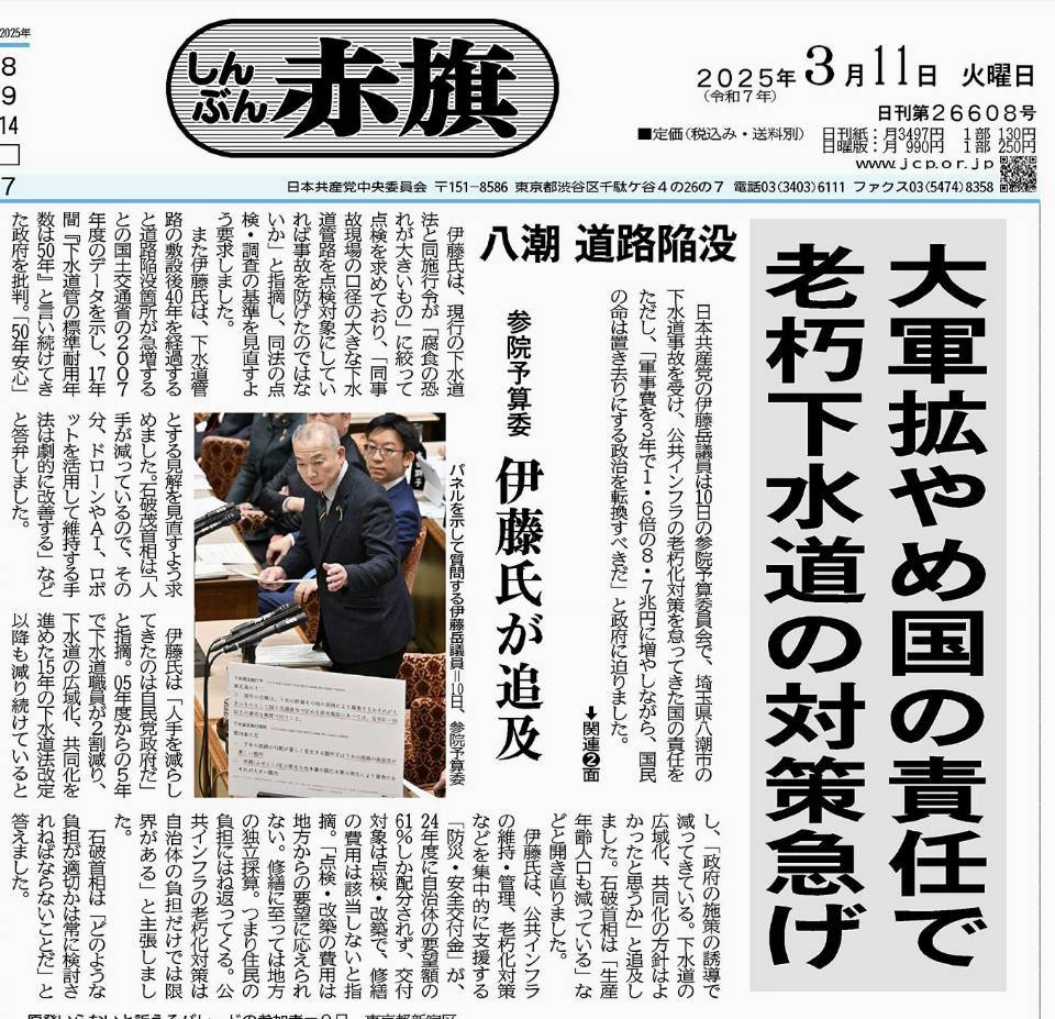 説明不要です。リアルでもインターネットでも、誰も指摘しないようなので言いますが、八潮市の陥没事故はアソコにミサイルが落ちたのと一緒です。ステレオタイプな護憲派は、反原発と合わせ技を決めたい一心で、原子力発電所にミサイルが落ちたらどうするの、しか言わないようですね。