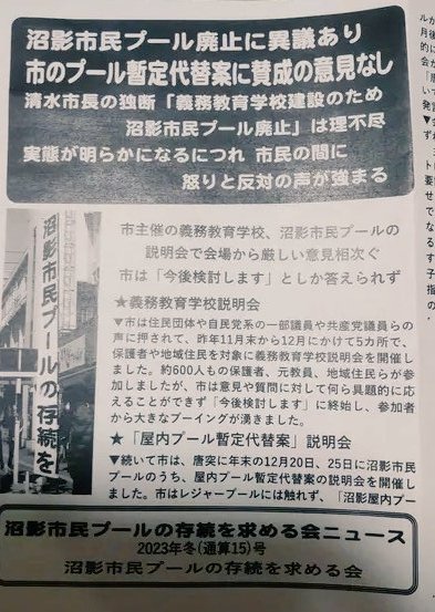 一方で、現在の沼影市民プールのような気軽に遊べる場所がなくなることを不安視する声もあります。
